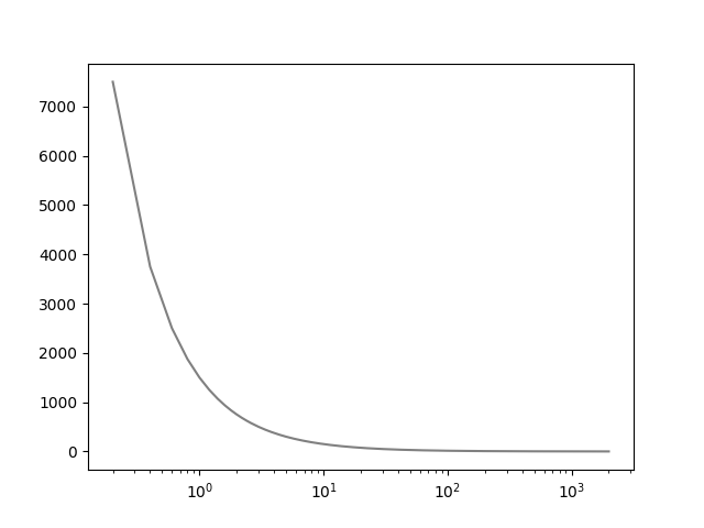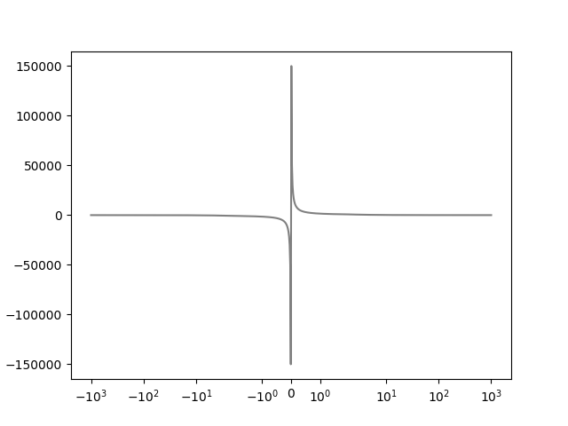 y = 1500 / x 그래프를 xscale = symlog로 설정했을 때의 그래프입니다.