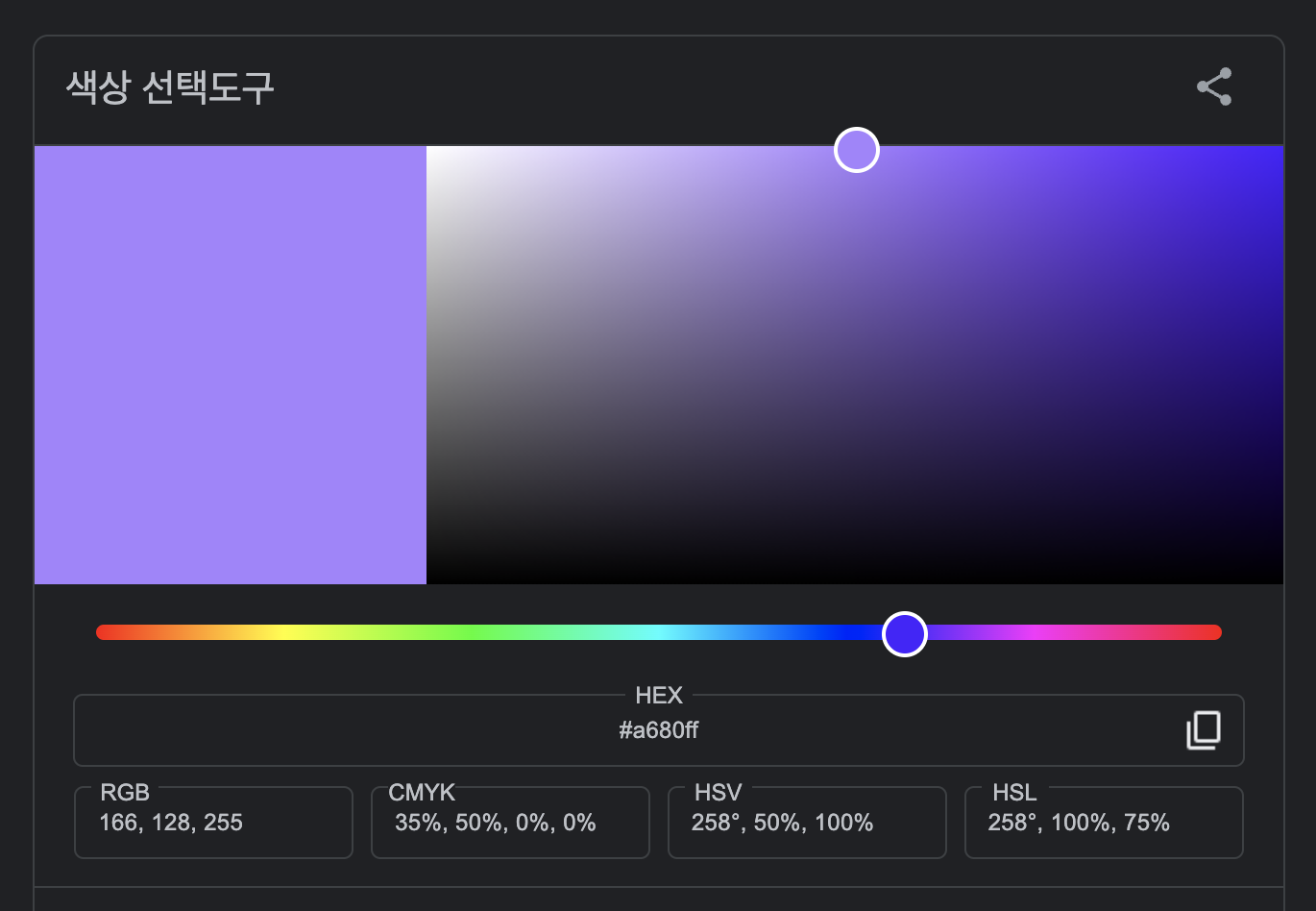 Hex color가 #a680ff로 보이는 것을 알 수 있습니다.