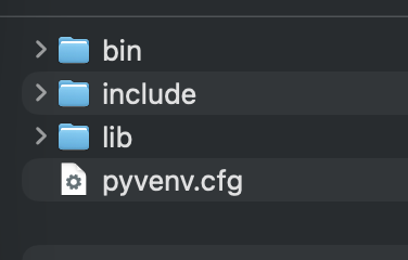 bin, include, lib 등의 폴더와 파일들은 모두 python 가상환경 구동에 필요한 것이므로 잘 설치된 것이라고 볼 수 있습니다.